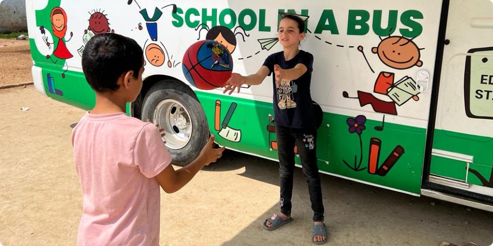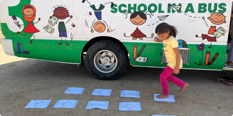 In Lebanon, our mobile School in a Bus brings education directly into refugee camps, reaching children most likely to be left behind. Our buses provide psychosocial support, distribute hygiene kits and food.